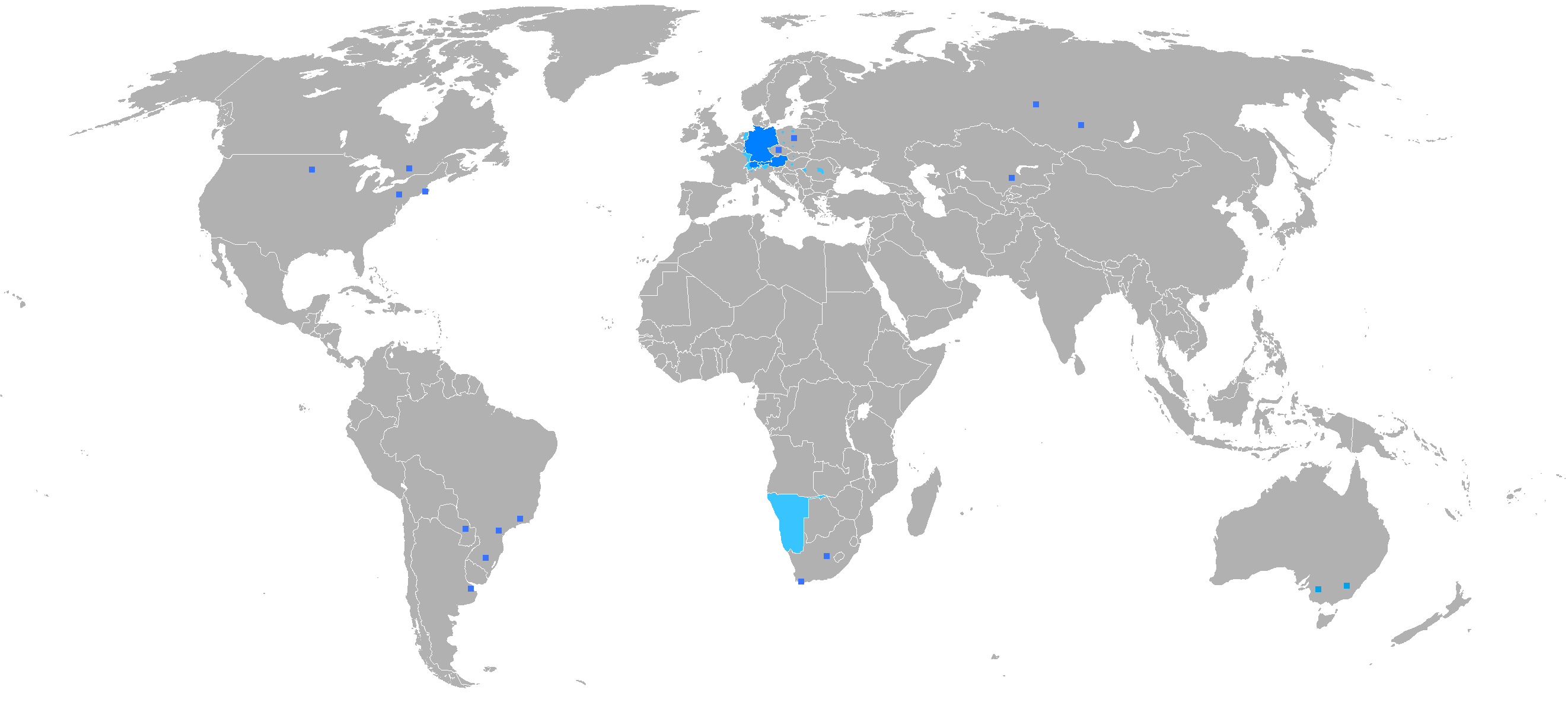 さらに,下の地図に見られるように世界中にドイツ語話者が存在することは,案外知られていないかもしれません 。(図をクリックすると拡大します)